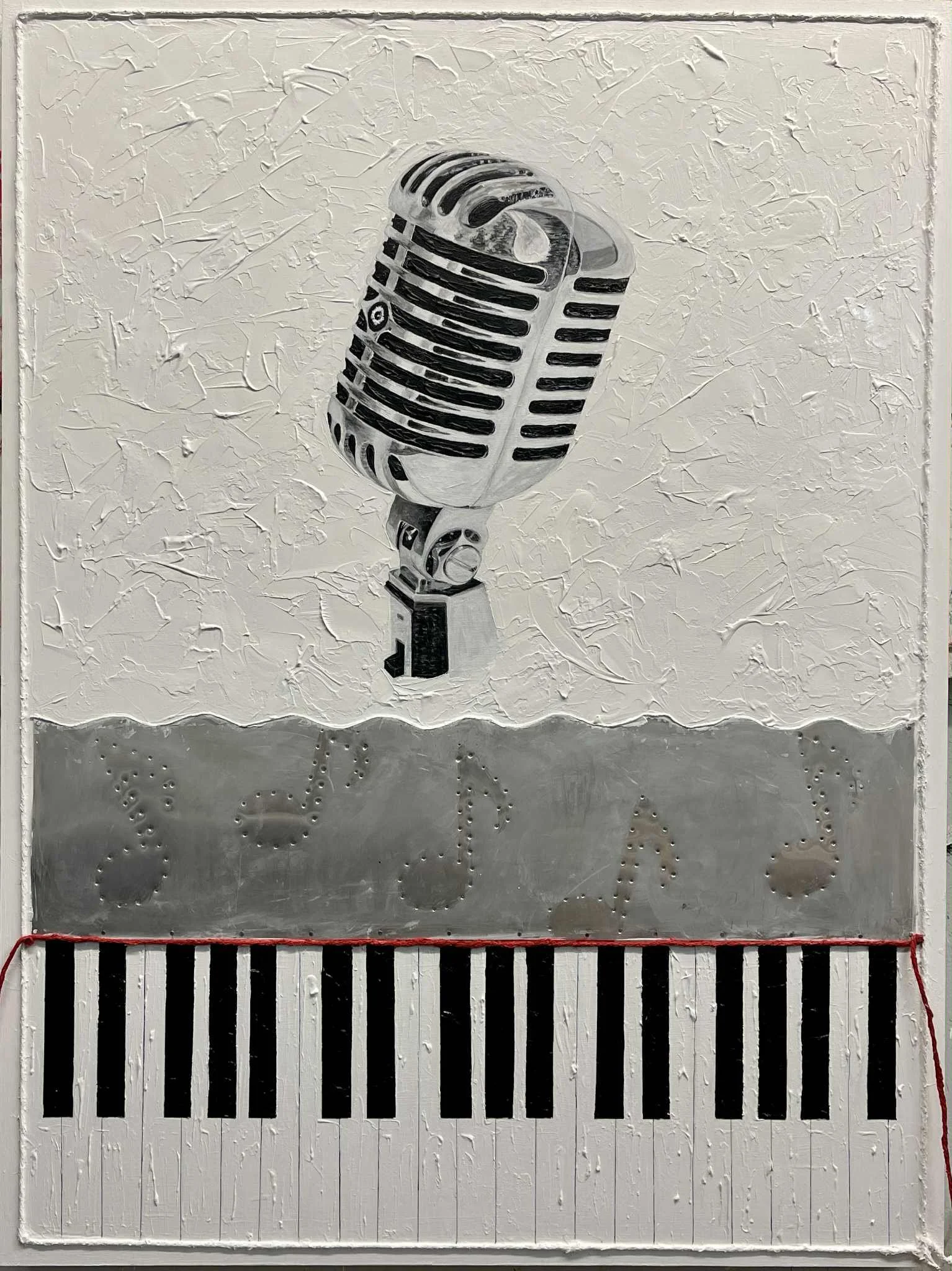 Le tableau est composé de 3 parties laissant un espace important au micro Vintage — sans le micro, il n’y a pas d’enregistrement sonore. Cette partie présente un effet de texture visuelle.